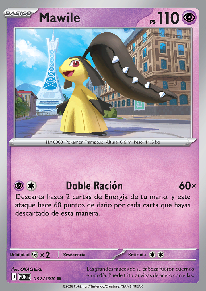 Doble Ración Descarta hasta 2 cartas de Energía de tu mano, y este ataque hace 60 puntos de daño por cada carta que hayas descartado de esta manera. |