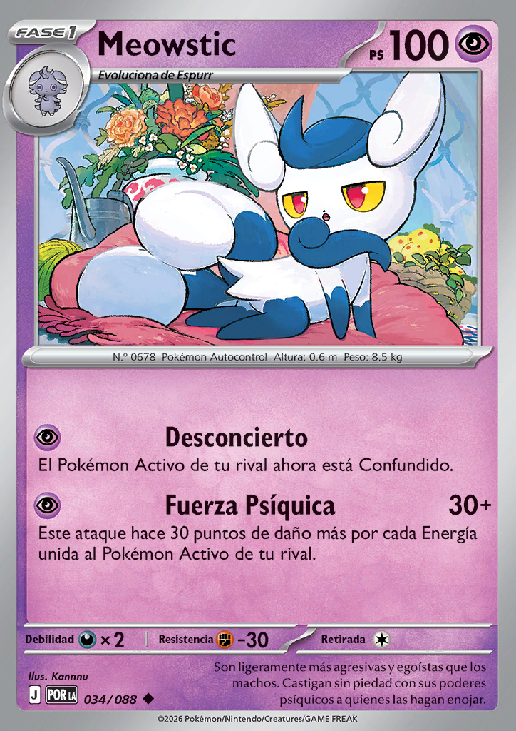 Psíquico Este ataque hace 30 puntos de daño más por cada Energía unida al Pokémon Activo de tu rival. |