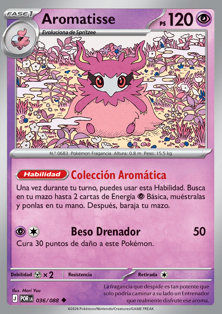 | Una vez durante tu turno, puedes usar esta habilidad. Busca en tu baraja hasta 2 cartas de Energía Básica, enséñalas y ponlas en tu mano. Después, baraja las cartas de tu baraja. | |