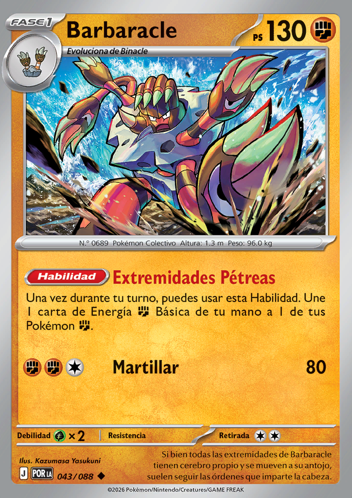 | Una vez durante tu turno, puedes usar esta habilidad. Une 1 carta de Energía Básica de tu mano a uno de tus Pokémon . | |