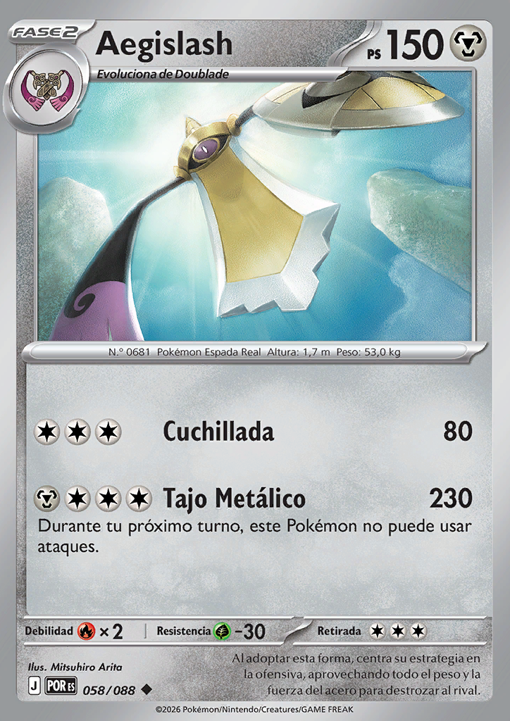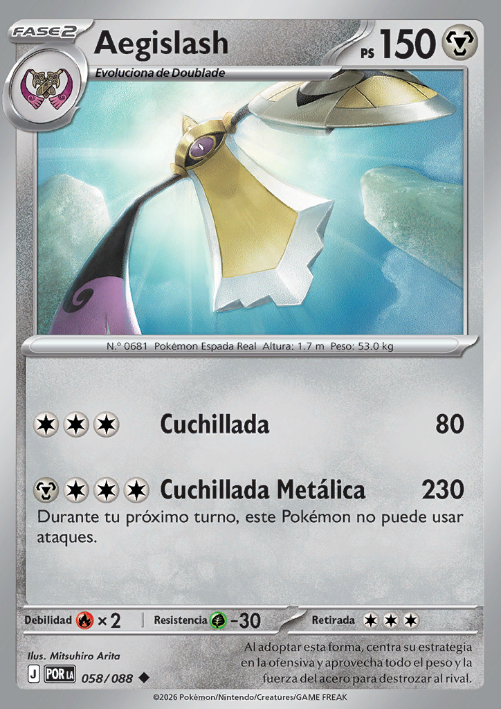 Tajo Metálico Durante tu próximo turno, este Pokémon no puede usar ataques. |