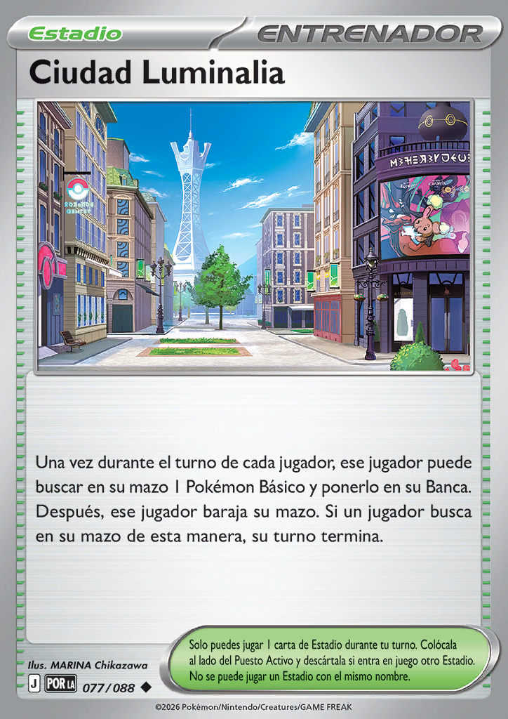 | Solo puedes jugar una carta de Estadio durante tu turno. Colócala al lado del Puesto Activo y descártala si entra en juego otro Estadio. No se puede jugar un Estadio con el mismo nombre. |