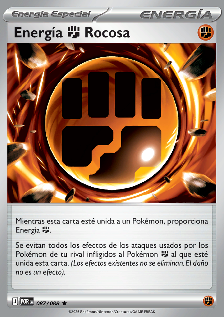 Mientras esta carta esté unida a un Pokémon, proporciona 1 Energía . Se evitan todos los efectos de los ataques usados por los Pokémon de tu rival e infligidos al Pokémon al que esté unida esta carta. (No se eliminan los efectos ya existentes. El daño no es un efecto). |