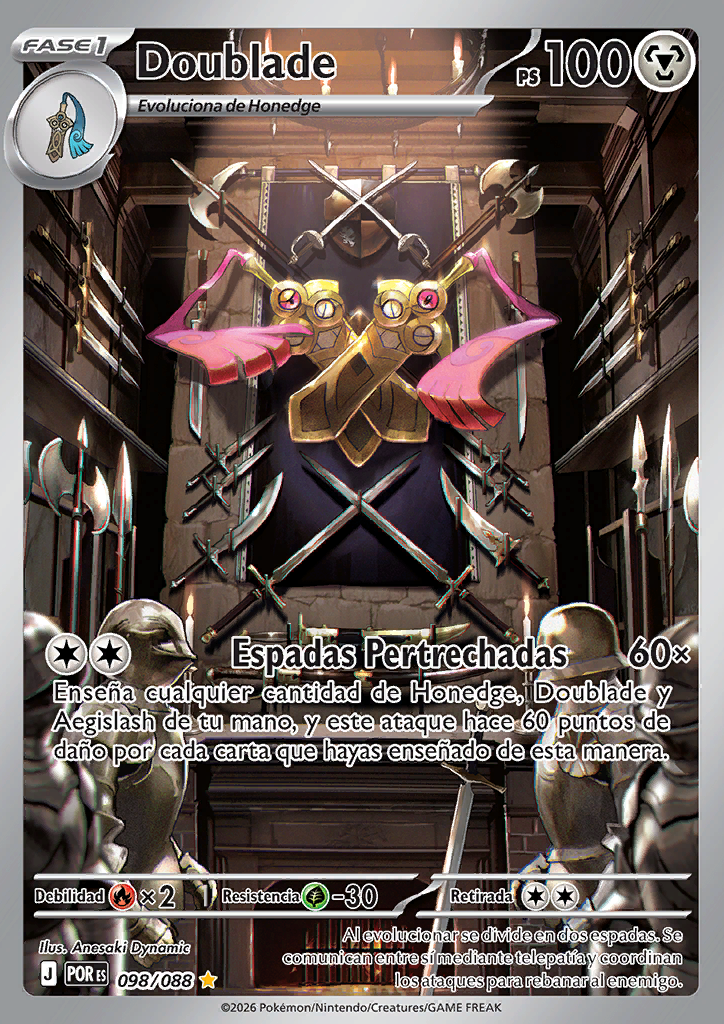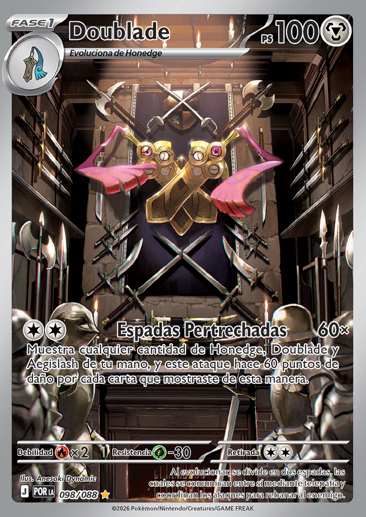 Espadas Pertrechadas Enseña cualquier cantidad de Honedge, Doublade y Aegislash de tu mano, y este ataque hace 60 puntos de daño por cada carta que hayas enseñado de esta manera. |