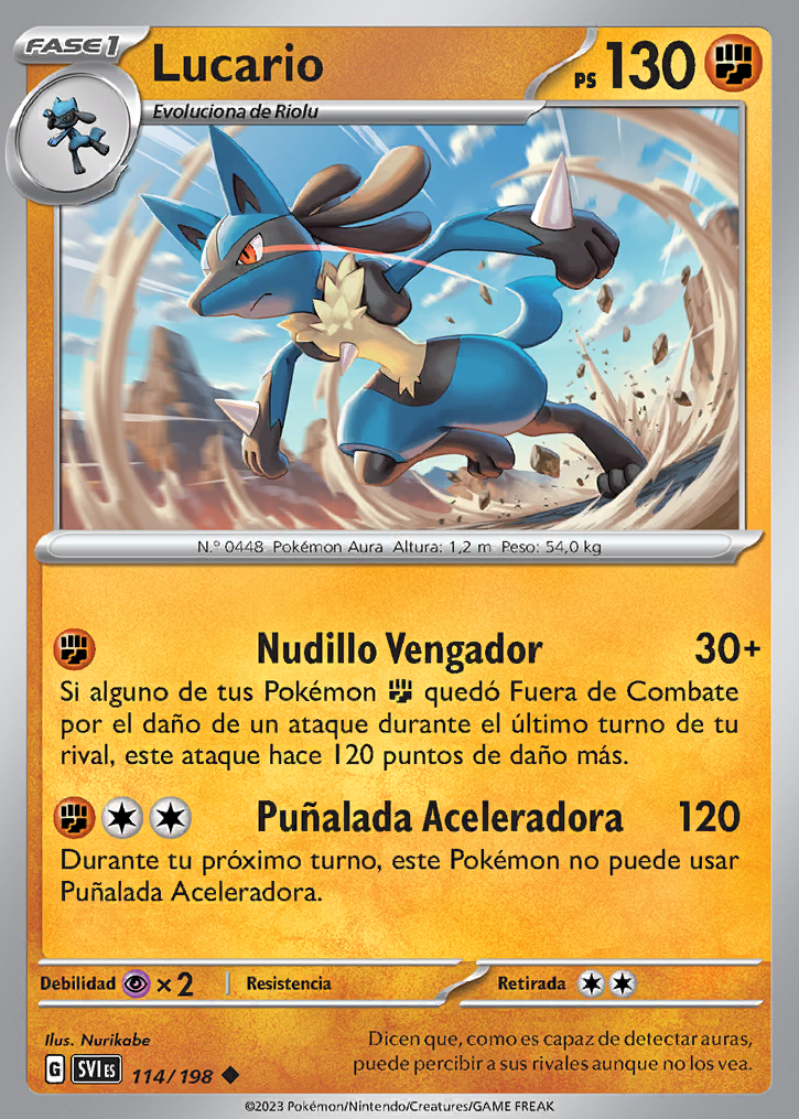 Nudillo Vengador Si alguno de tus Pokémon Fighting quedó Fuera de Combate por el daño de un ataque durante el último turno de tu rival, este ataque hace 120 puntos de daño más. |