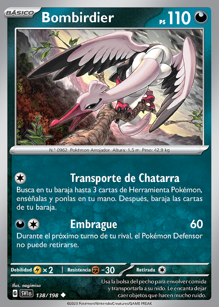 Transporte de Chatarra Busca en tu baraja hasta 3 cartas de Herramienta Pokémon, enséñalas y ponlas en tu mano. Después, baraja las cartas de tu baraja. |