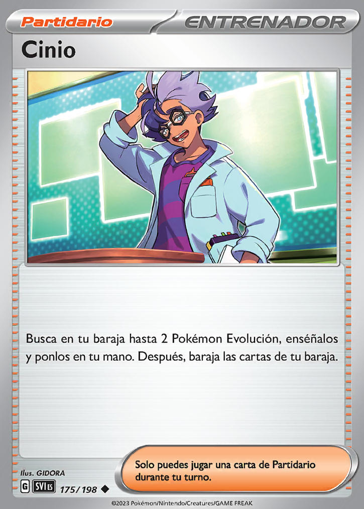 | Busca en tu baraja hasta 2 Pokémon Evolución, enséñalos y ponlos en tu mano. Después, baraja las cartas de tu baraja. |