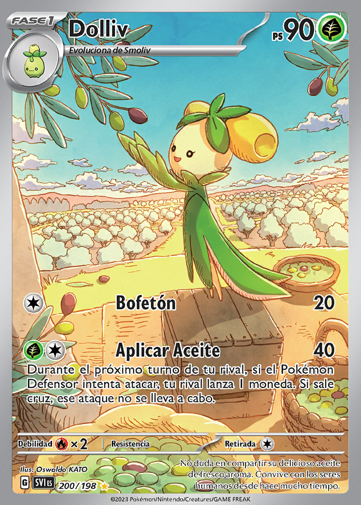 Aplicar Aceite Durante el próximo turno de tu rival, si el Pokémon Defensor intenta atacar, tu rival lanza 1 moneda. Si sale cruz, ese ataque no se lleva a cabo. |