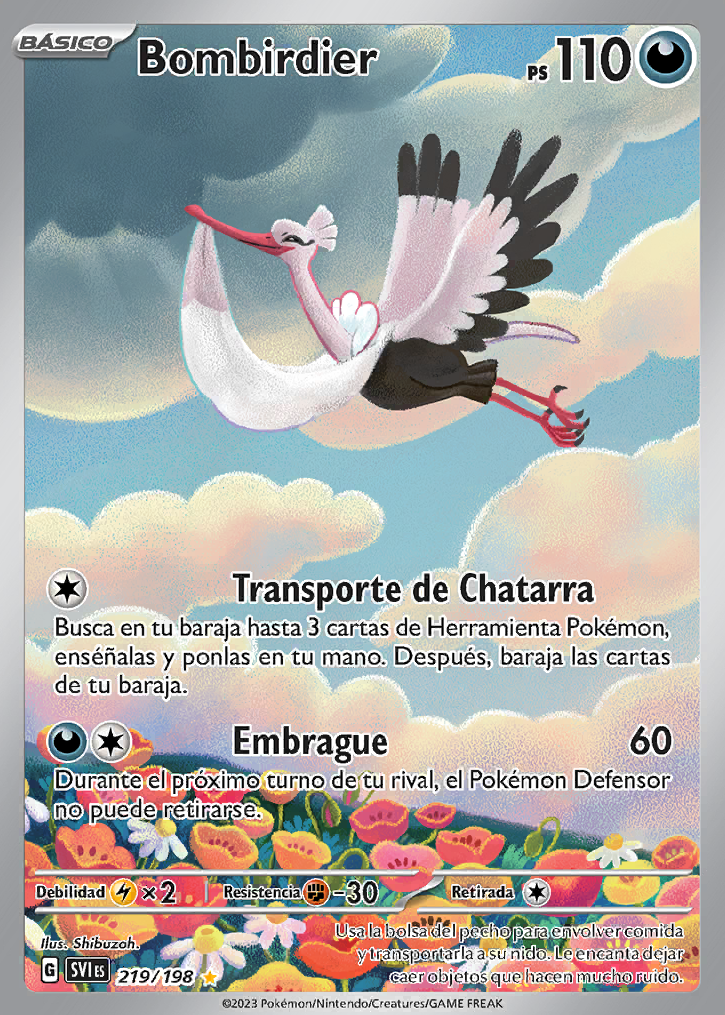 Transporte de Chatarra Busca en tu baraja hasta 3 cartas de Herramienta Pokémon, enséñalas y ponlas en tu mano. Después, baraja las cartas de tu baraja. |