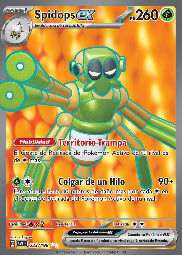 Colgar de un Hilo Este ataque hace 30 puntos de daño más por cada Colorless en el Coste de Retirada del Pokémon Activo de tu rival. |