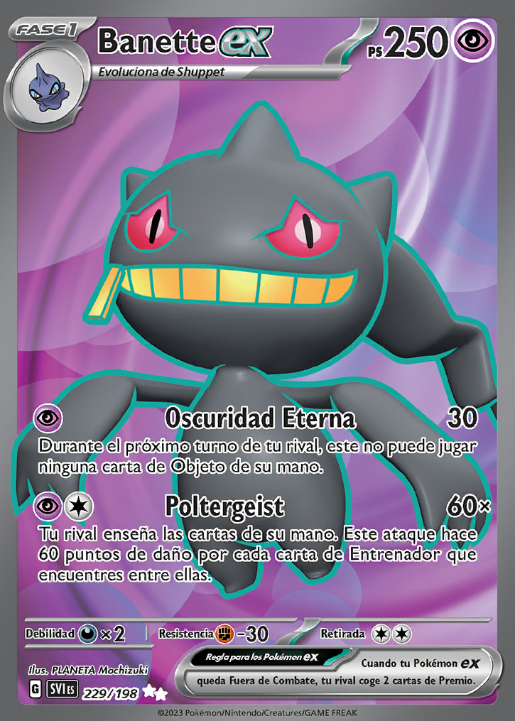 Poltergeist Tu rival enseña las cartas de su mano. Este ataque hace 60 puntos de daño por cada carta de Entrenador que encuentres entre ellas. |