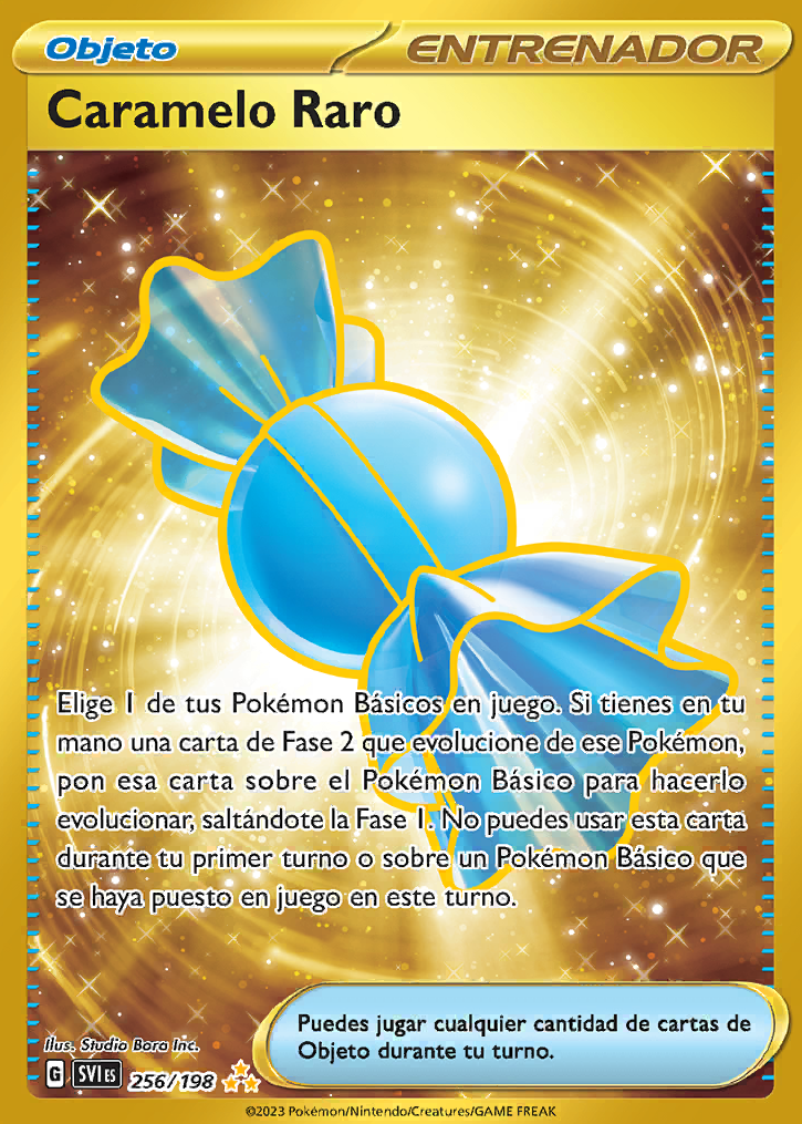 | Elige 1 de tus Pokémon Básicos en juego. Si tienes en tu mano una carta de Fase 2 que evolucione de ese Pokémon, pon esa carta sobre el Pokémon Básico para hacerlo evolucionar, saltándote la Fase 1. No puedes usar esta carta durante tu primer turno o sobre un Pokémon Básico que se haya puesto en juego en este turno. |