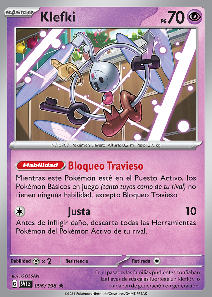 | Mientras este Pokémon esté en el Puesto Activo, los Pokémon Básicos en juego (tanto tuyos como de tu rival) no tienen ninguna habilidad, excepto Bloqueo Travieso. | |