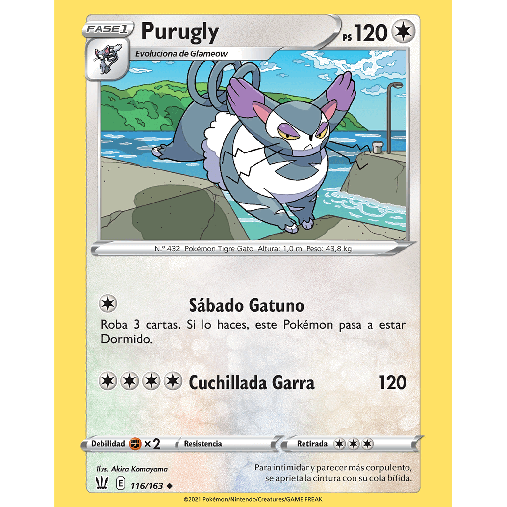 Sábado Gatuno Roba 3 cartas. Si lo haces, este Pokémon pasa a estar Dormido. |