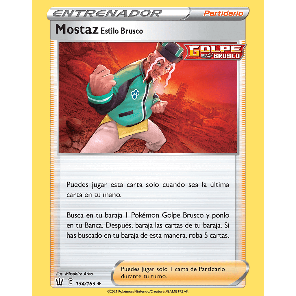 | Puedes jugar esta carta solo cuando sea la última carta en tu mano. Busca en tu baraja 1 Pokémon Golpe Brusco y ponlo en tu Banca. Después, baraja las cartas de tu baraja. Si has buscado en tu baraja de esta manera, roba 5 cartas. |