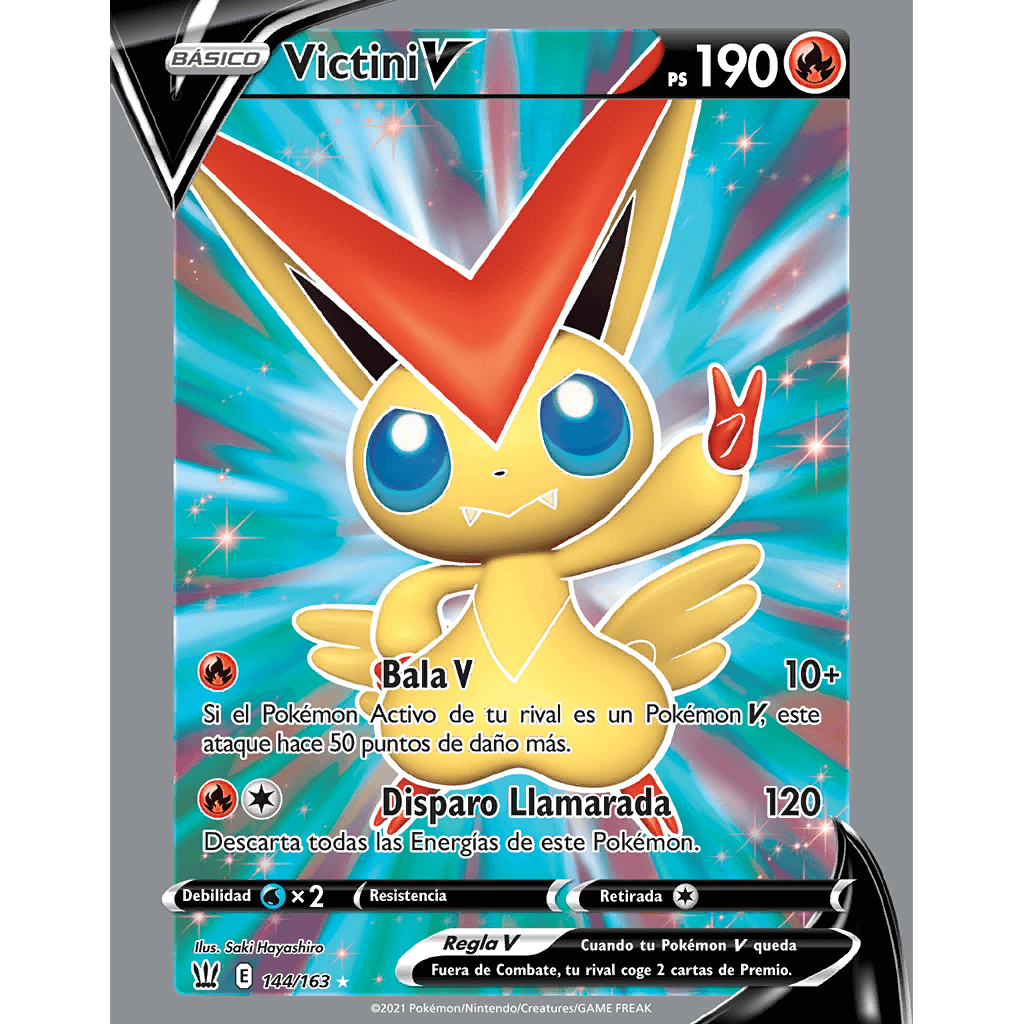 Bala V Si el Pokémon Activo de tu rival es un Pokémon V, este ataque hace 50 puntos de daño más. |