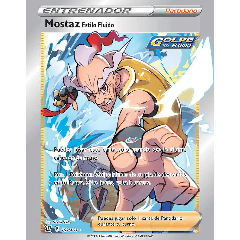 | Puedes jugar esta carta solo cuando sea la última carta en tu mano. Pon 1 Pokémon Golpe Fluido de tu pila de descartes en tu Banca. Si lo haces, roba 5 cartas. |