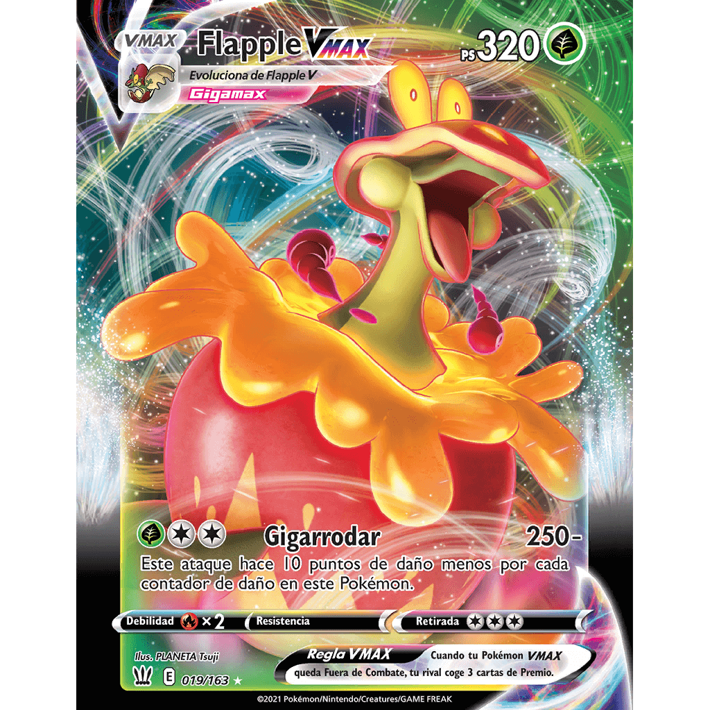 Cuando tu Pokémon VMAX queda Fuera de Combate, tu rival coge 3 cartas de Premio. |