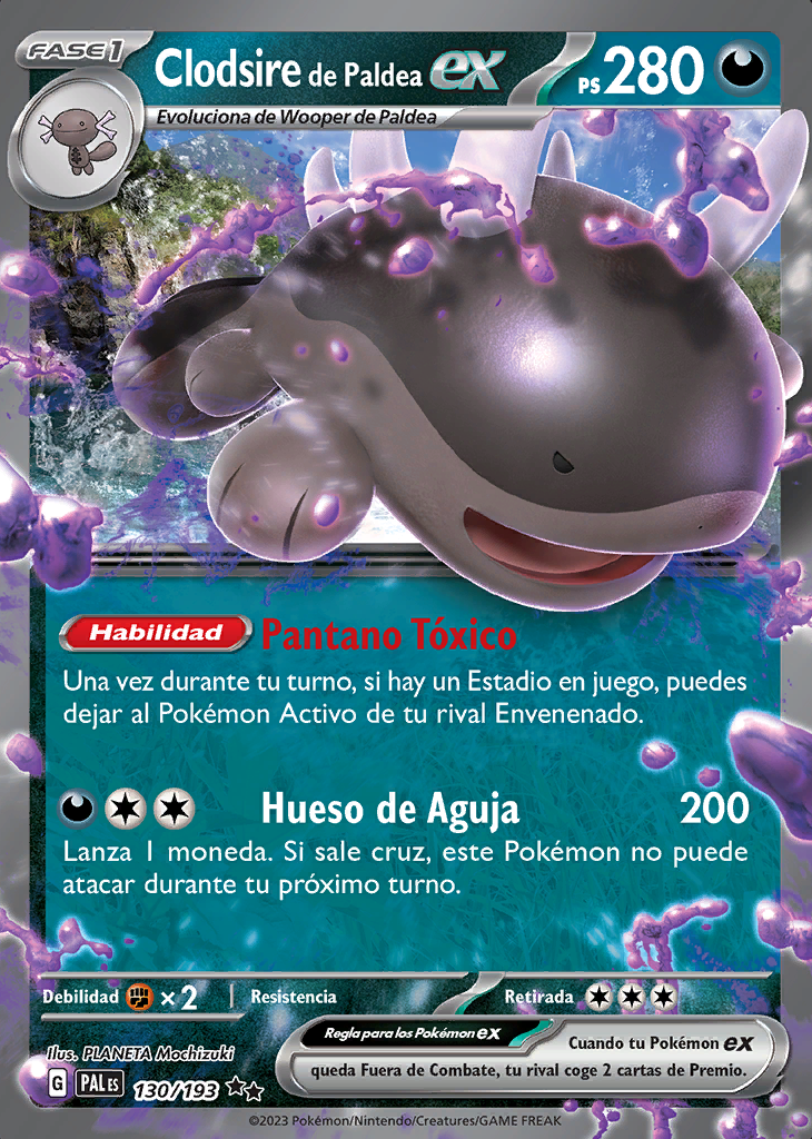| Una vez durante tu turno, si hay un Estadio en juego, puedes dejar al Pokémon Activo de tu rival Envenenado. | |