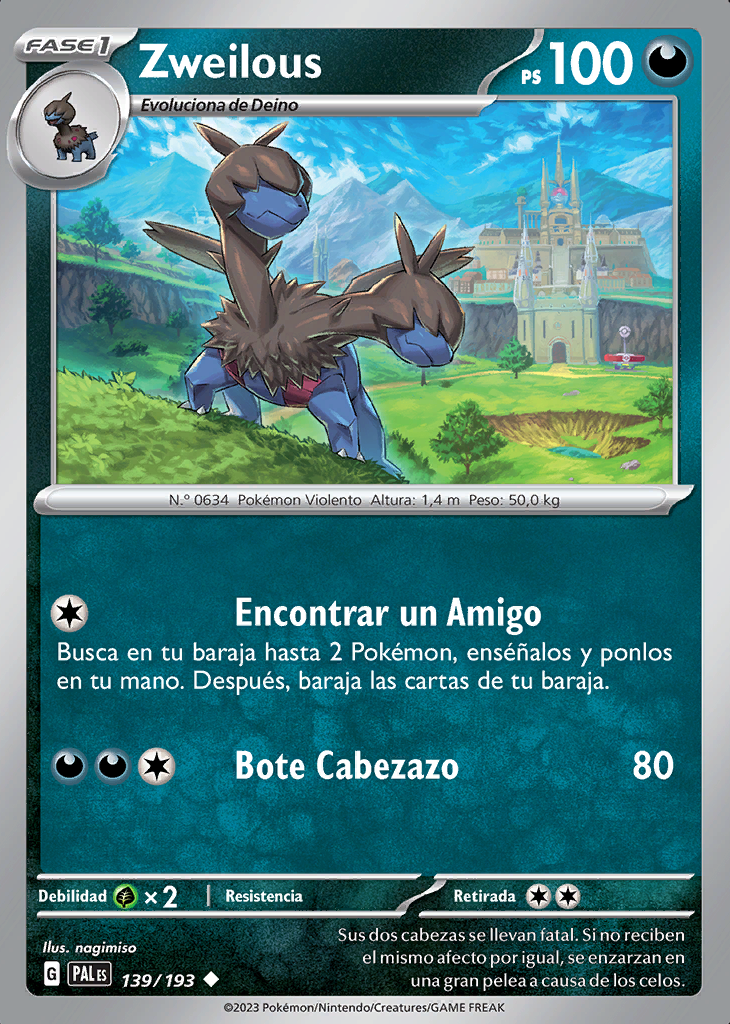 Encontrar un Amigo Busca en tu baraja hasta 2 Pokémon, enséñalos y ponlos en tu mano. Después, baraja las cartas de tu baraja. |