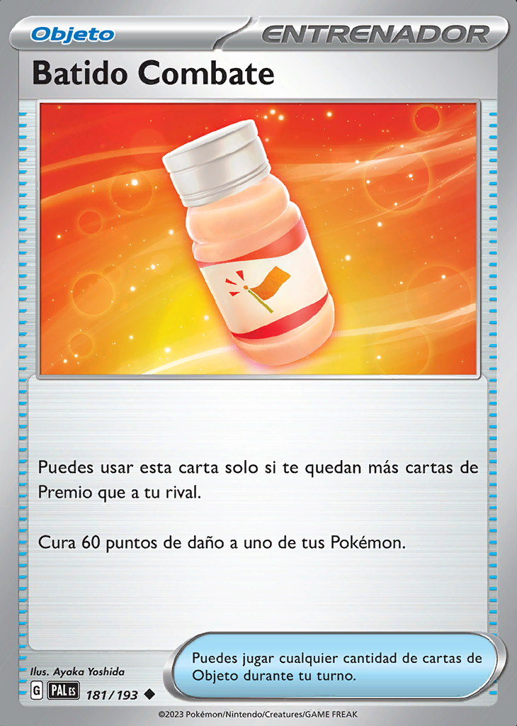 Puedes usar esta carta solo si te quedan más cartas de Premio que a tu rival. Cura 60 puntos de daño a uno de tus Pokémon. |