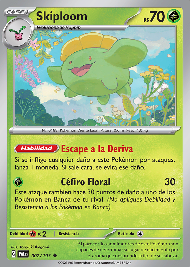 Céfiro Floral Este ataque también hace 30 puntos de daño a uno de los Pokémon en Banca de tu rival. (No apliques Debilidad y Resistencia a los Pokémon en Banca). |