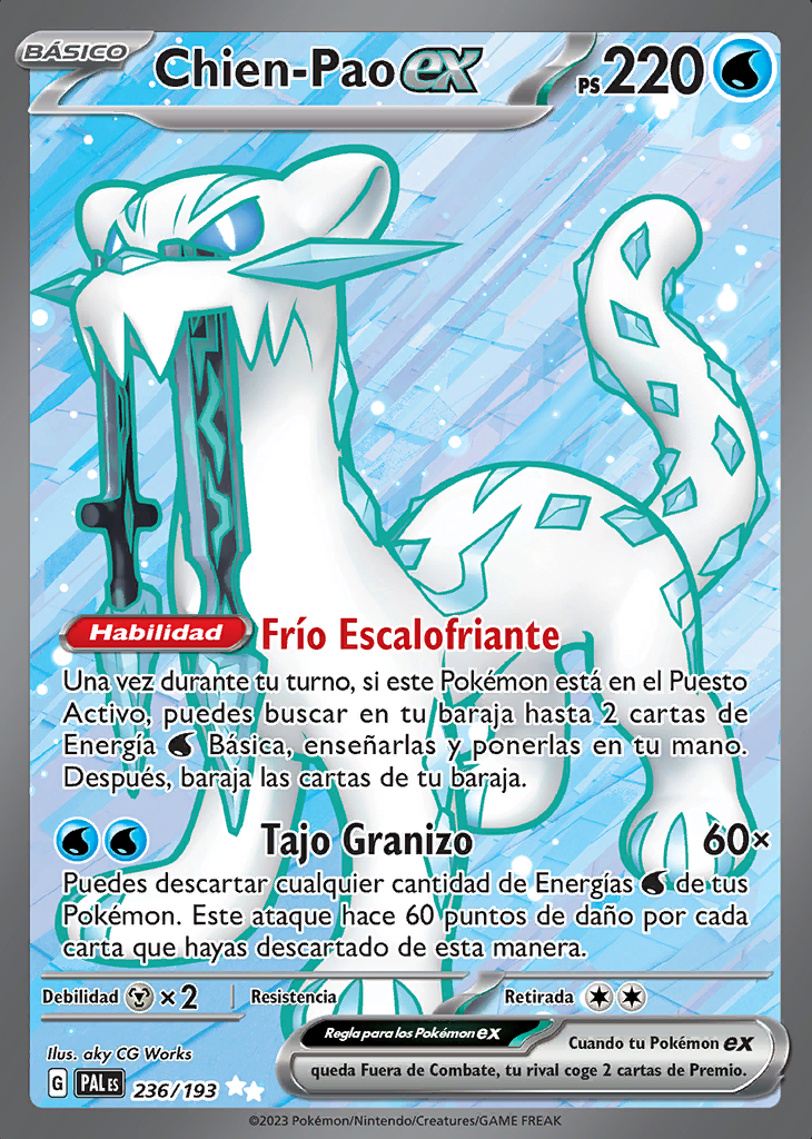 Tajo Granizo Puedes descartar cualquier cantidad de Energías de tus Pokémon. Este ataque hace 60 puntos de daño por cada carta que hayas descartado de esta manera. |