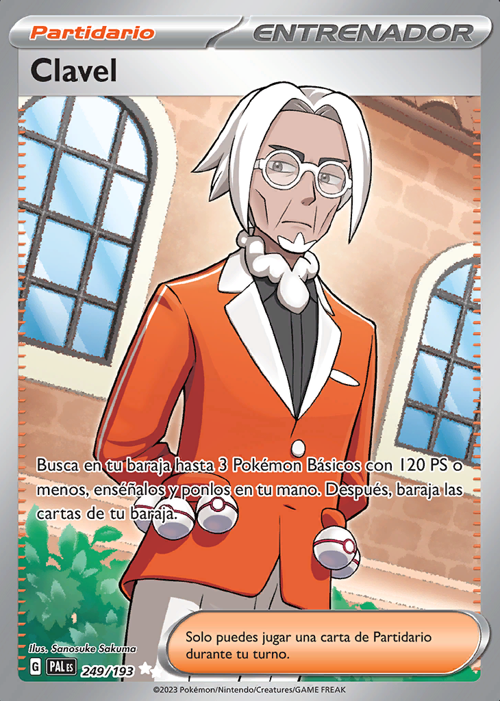 | Busca en tu baraja hasta 3 Pokémon Básicos con 120 PS o menos, enséñalos y ponlos en tu mano. Después, baraja las cartas de tu baraja. |