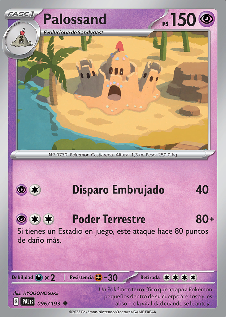Poder Terrestre Si tienes un Estadio en juego, este ataque hace 80 puntos de daño más. |