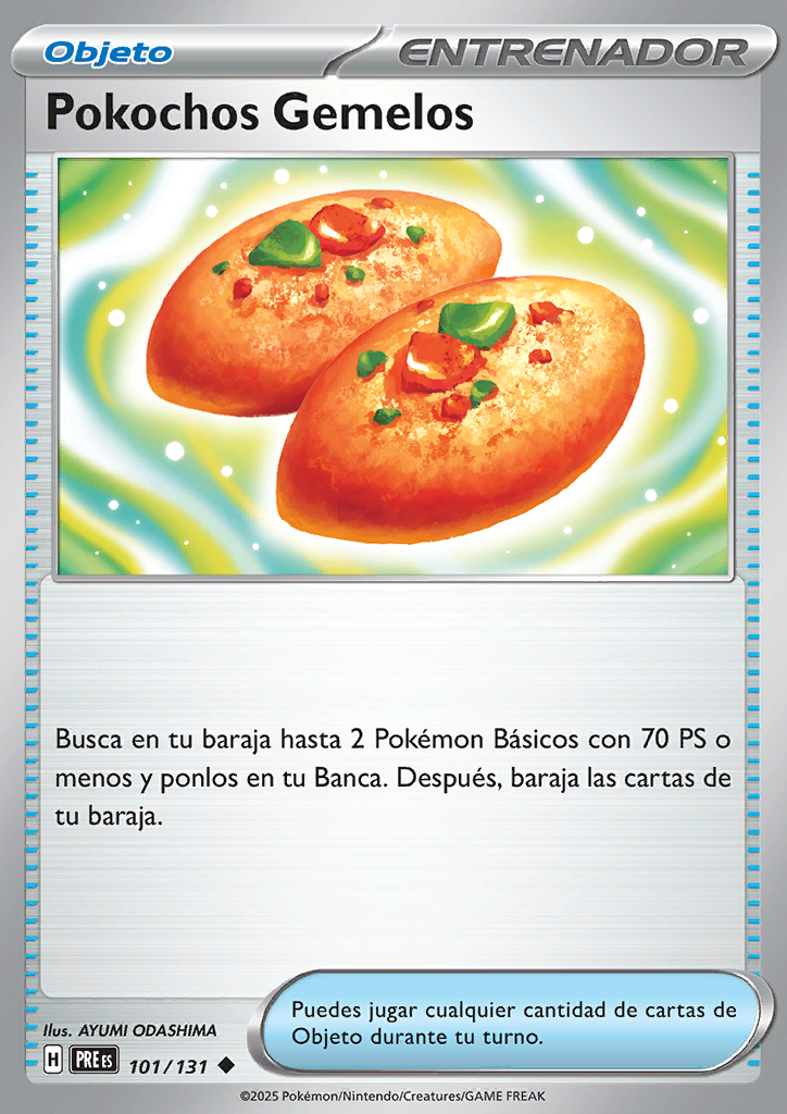 | Busca en tu baraja hasta 2 Pokémon Básicos con 70 PS o menos y ponlos en tu Banca. Después, baraja las cartas de tu baraja. |
