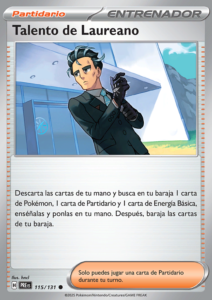 | Descarta las cartas de tu mano y busca en tu baraja 1 carta de Pokémon, 1 carta de Partidario y 1 carta de Energía Básica, enséñalas y ponlas en tu mano. Después, baraja las cartas de tu baraja. |