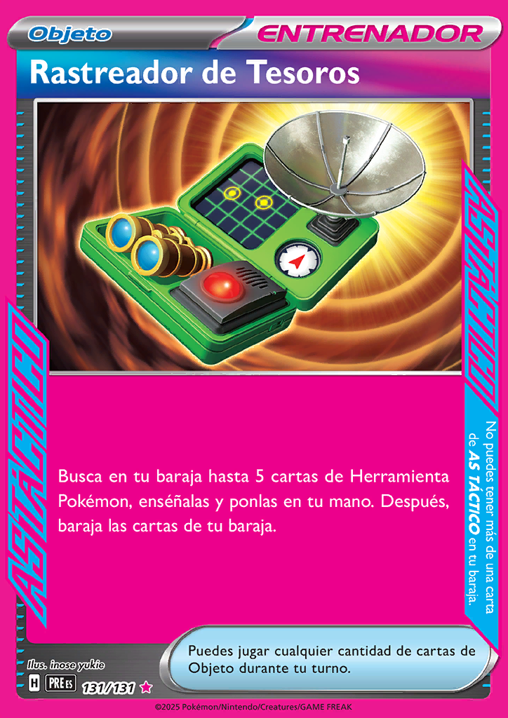 | Busca en tu baraja hasta 5 cartas de Herramienta Pokémon, enséñalas y ponlas en tu mano. Después, baraja las cartas de tu baraja. |
