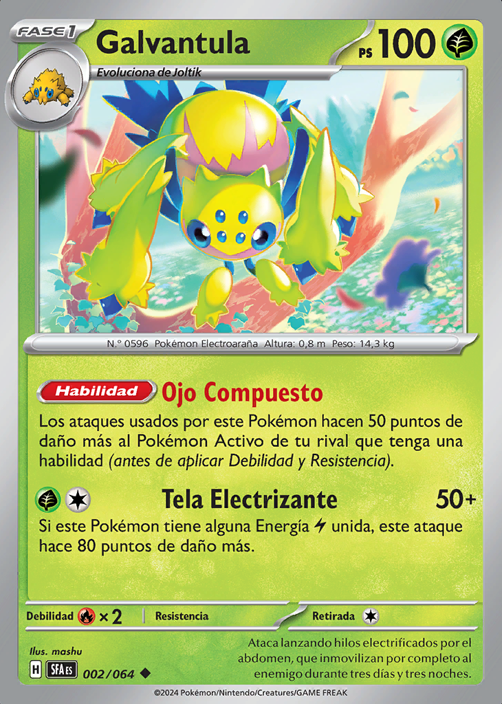 Tela Electrizante Si este Pokémon tiene alguna Energía unida, este ataque hace 80 puntos de daño más. |