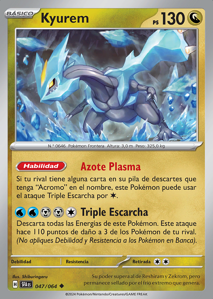 | Si tu rival tiene alguna carta en su pila de descartes que tenga "Acromo" en el nombre, este Pokémon puede usar el ataque Triple Escarcha por . | |