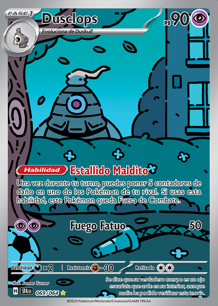 | Una vez durante tu turno, puedes poner 5 contadores de daño en uno de los Pokémon de tu rival. Si usas esta habilidad, este Pokémon queda Fuera de Combate. | |