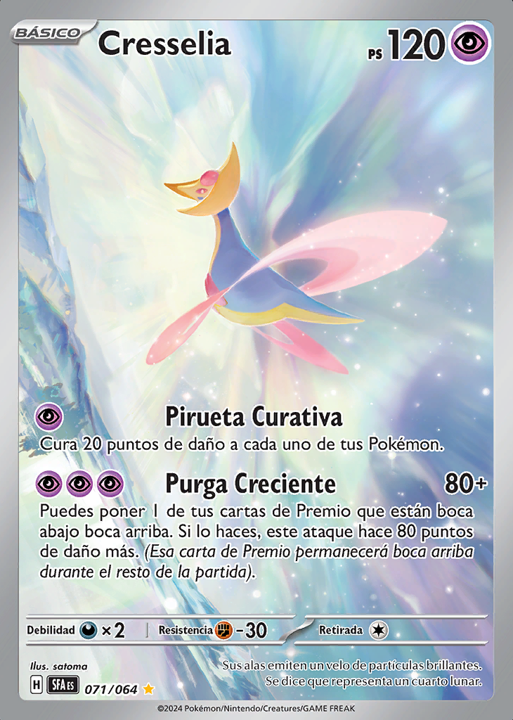 Purga Creciente Puedes poner 1 de tus cartas de Premio que están boca abajo boca arriba. Si lo haces, este ataque hace 80 puntos de daño más. (Esa carta de Premio permanecerá boca arriba durante el resto de la partida). |