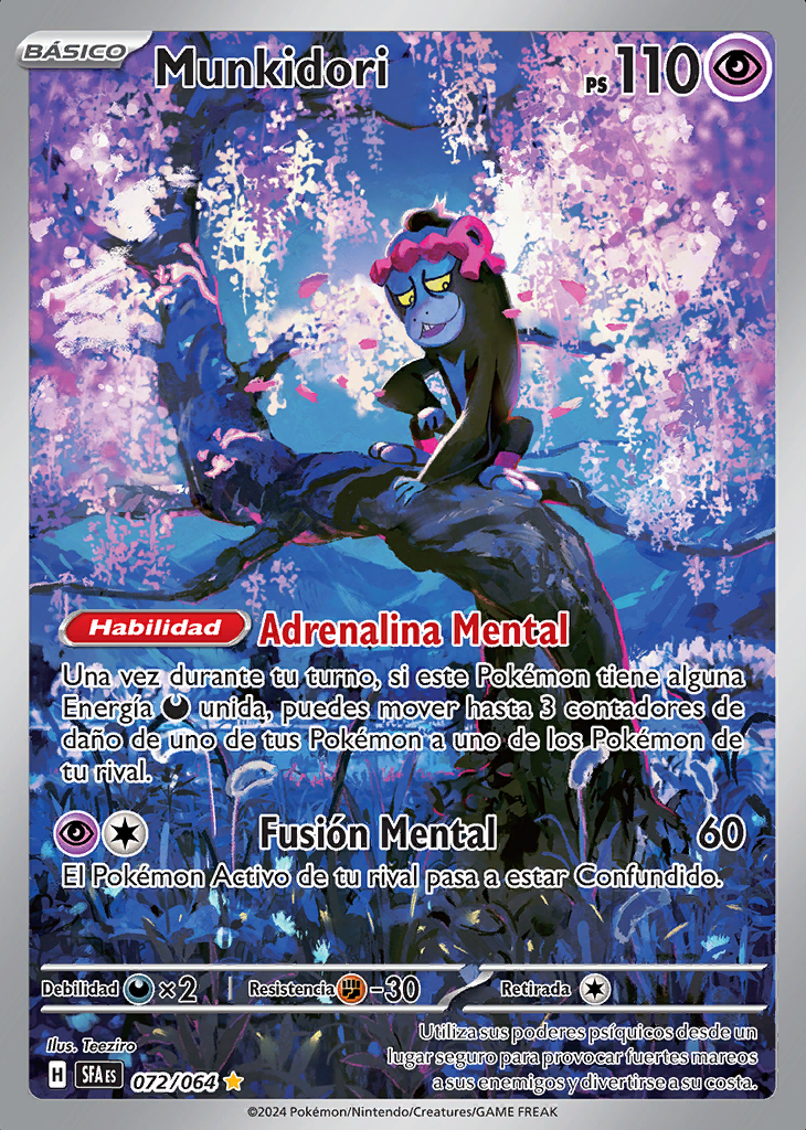 | Una vez durante tu turno, si este Pokémon tiene alguna Energía unida, puedes mover hasta 3 contadores de daño de uno de tus Pokémon a uno de los Pokémon de tu rival. | |