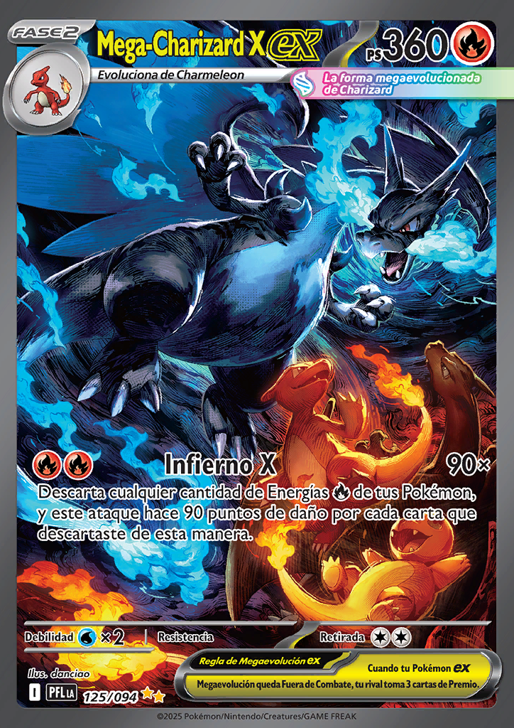 Infierno X Descarta cualquier cantidad de Energías de tus Pokémon, y este ataque hace 90 puntos de daño por cada carta que hayas descartado de esta manera. |