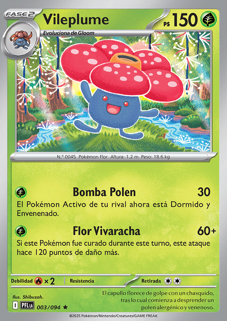 Bomba de Polen El Pokémon Activo de tu rival pasa a estar Dormido y Envenenado. |