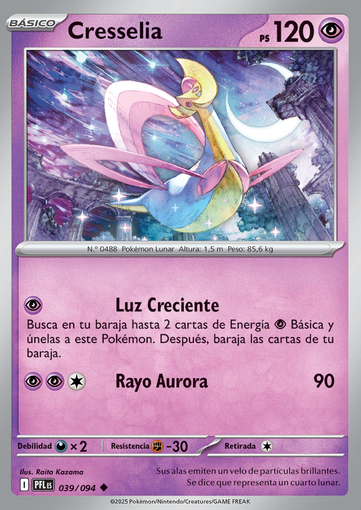 Luz Creciente Busca en tu baraja hasta 2 cartas de Energía Básica y únelas a este Pokémon. Después, baraja las cartas de tu baraja. |