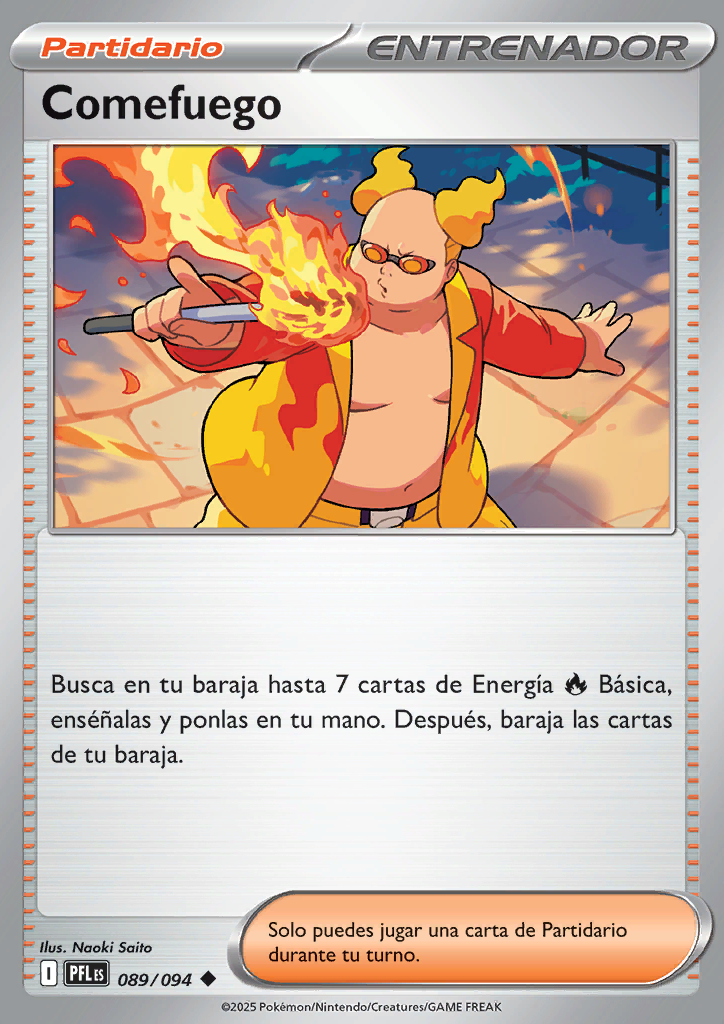 | Busca en tu baraja hasta 7 cartas de Energía Básica, enséñalas y ponlas en tu mano. Después, baraja las cartas de tu baraja. |