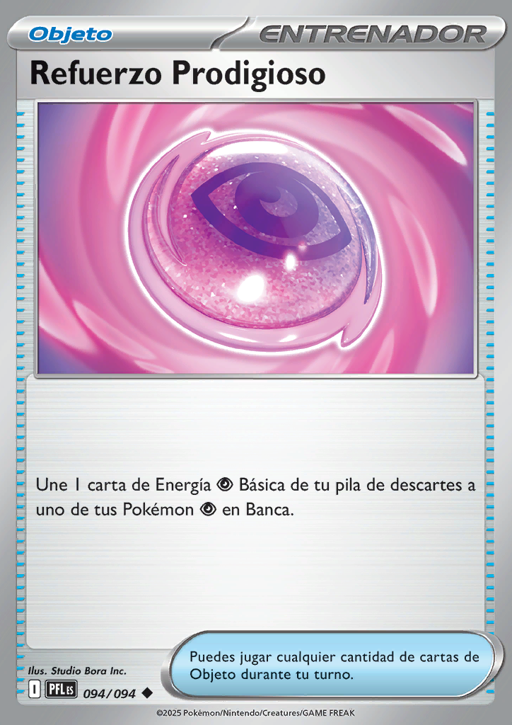 | Une 1 carta de Energía Básica de tu pila de descartes a uno de tus Pokémon en Banca. |