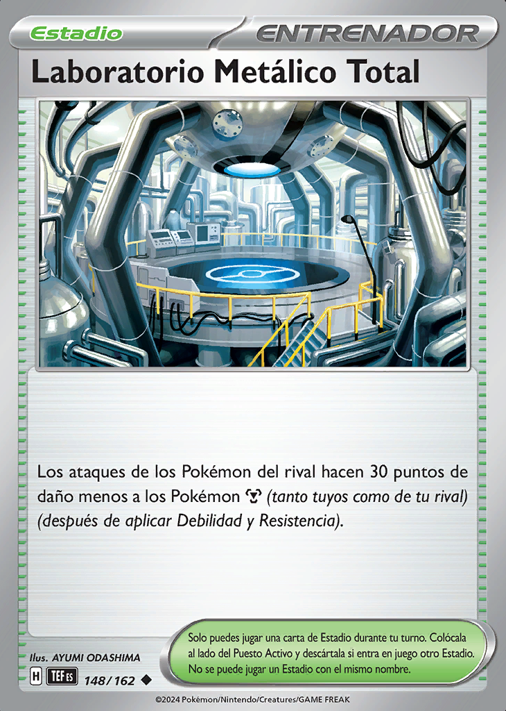 | Los ataques de los Pokémon del rival hacen 30 puntos de daño menos a los Pokémon (tanto tuyos como de tu rival) (después de aplicar Debilidad y Resistencia). |