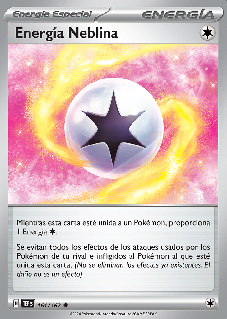 Mientras esta carta esté unida a un Pokémon, proporciona 1 Energía . Se evitan todos los efectos de los ataques usados por los Pokémon de tu rival e infligidos al Pokémon al que esté unida esta carta. (No se eliminan los efectos ya existentes. El daño no es un efecto). |