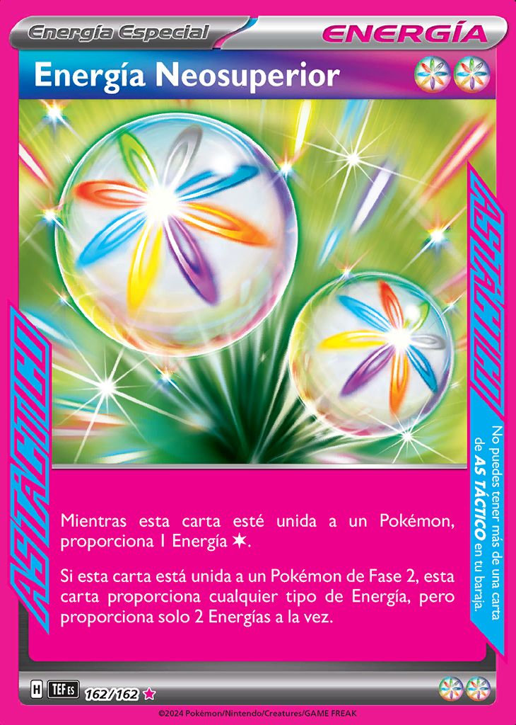 Mientras esta carta esté unida a un Pokémon, proporciona 1 Energía . Si esta carta está unida a un Pokémon de Fase 2, esta carta proporciona cualquier tipo de Energía, pero proporciona solo 2 Energías a la vez. |