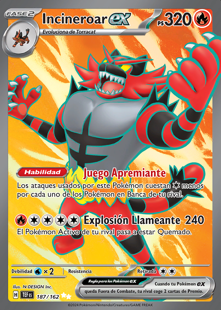 Explosión Llameante El Pokémon Activo de tu rival pasa a estar Quemado. |