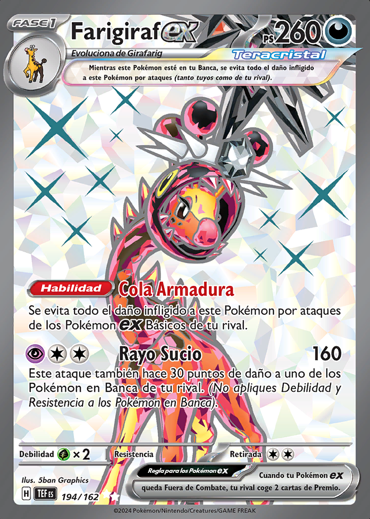 Cuando tu Pokémon ex queda Fuera de Combate, tu rival coge 2 cartas de Premio. |