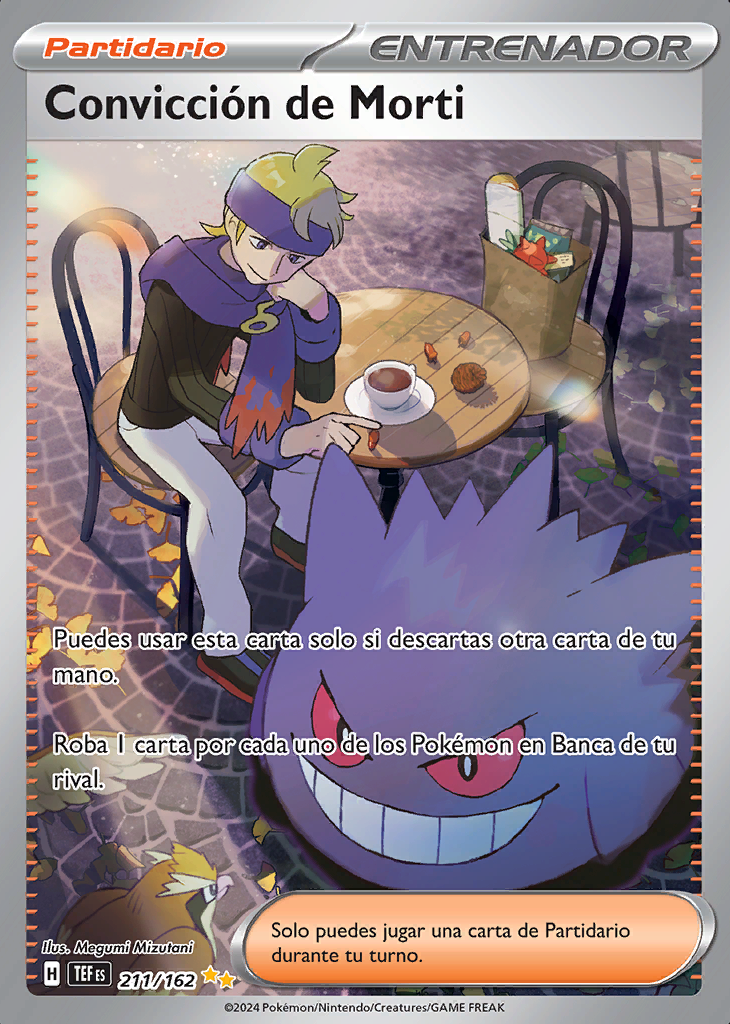 Puedes usar esta carta solo si descartas otra carta de tu mano. Roba 1 carta por cada uno de los Pokémon en Banca de tu rival. |