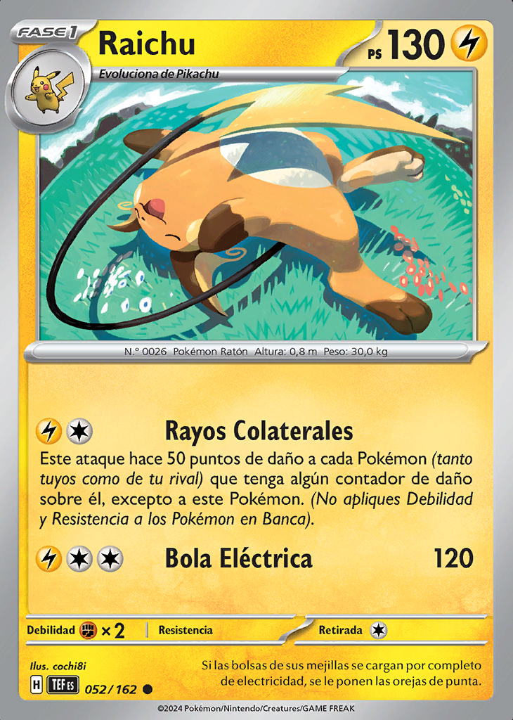 Rayos Colaterales Este ataque hace 50 puntos de daño a cada Pokémon (tanto tuyos como de tu rival) que tenga algún contador de daño sobre él, excepto a este Pokémon. (No apliques Debilidad y Resistencia a los Pokémon en Banca). |