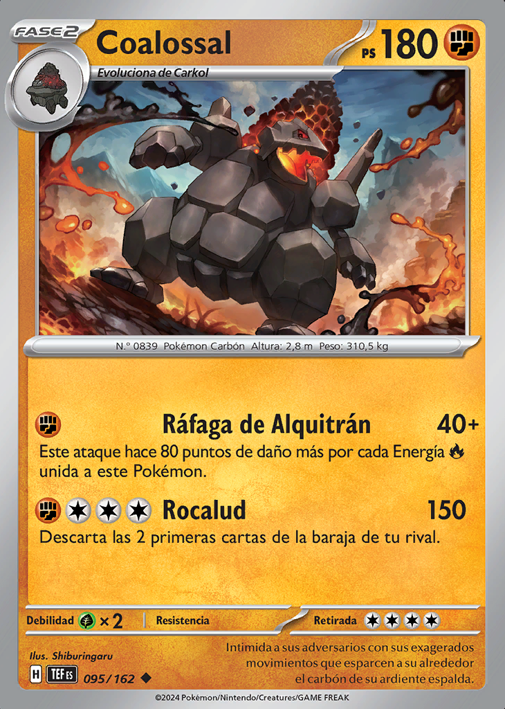 Ráfaga de Alquitrán Este ataque hace 80 puntos de daño más por cada Energía unida a este Pokémon. |